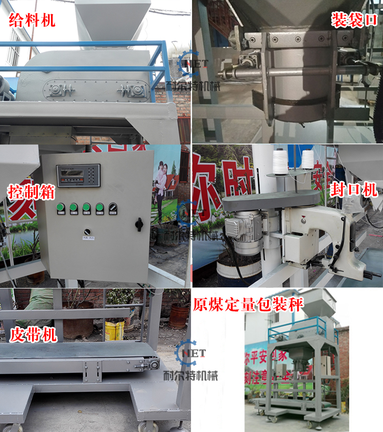 3、煤塊經過喂料輸送帶進入稱重料斗,當稱重料斗達到指定重量后,喂料輸送帶停止喂料,包裝機夾袋機構則會自動開啟,灌完指定的煤塊以后,夾帶機構松開,裝滿煤塊的袋子落到封包輸送帶上,封包輸送帶把裝有煤炭的口袋運送到縫包縫紉機正下方。