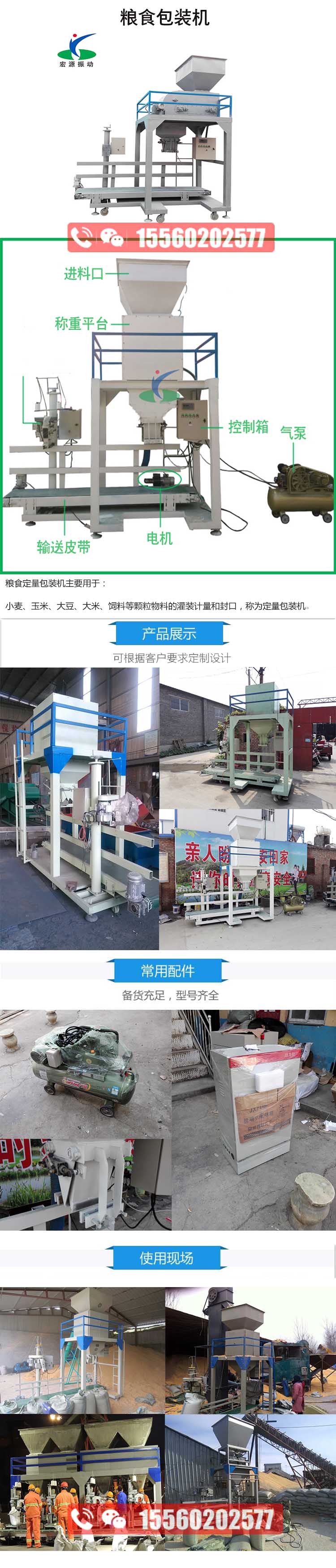 【產品簡介】糧食定量包裝機主要用于:小麥、玉米、大豆、大米、飼料等顆粒物料的灌裝計量和封口,稱為定量包裝機。