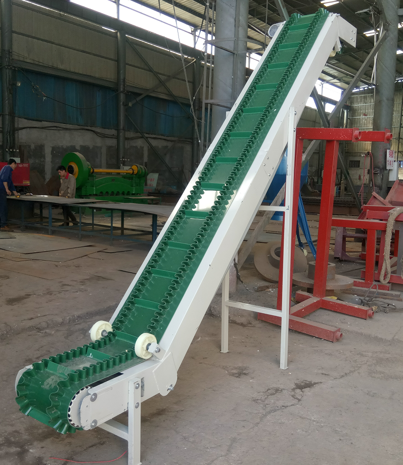 (1)、大傾角皮帶輸送機為一般用途的散狀物料連續輸送設備,但采用的是具有波狀擋邊和橫隔板的輸送帶。因此,特別適用于大傾角及垂直90°輸送。