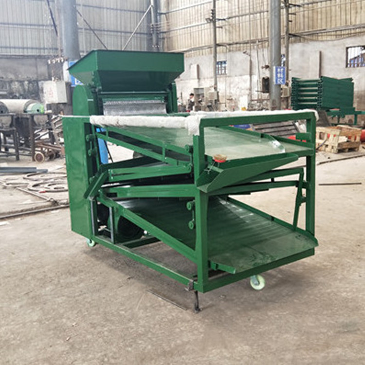 原枝花椒投進(jìn)料斗后--------粉碎裝置將原枝花椒進(jìn)行粉碎,將枝葉殼籽分別剝離下來--------通過下料器一起落到篩面上進(jìn)行分離篩分---------一層將篩出來的是大枝干、梅花椒、石子,復(fù)試篩網(wǎng)篩出來的是花椒枝--------二層篩出來的是花椒籽,椒籽出來的地方有風(fēng)機(jī),將里面輕的雜質(zhì)篩選出來-------三層是為篩分椒枝設(shè)計,整層篩出來都是花椒枝------底層篩出來的是花椒殼,復(fù)試篩網(wǎng)是塵土雜質(zhì)等。